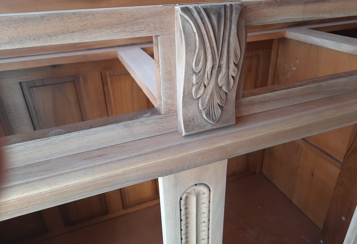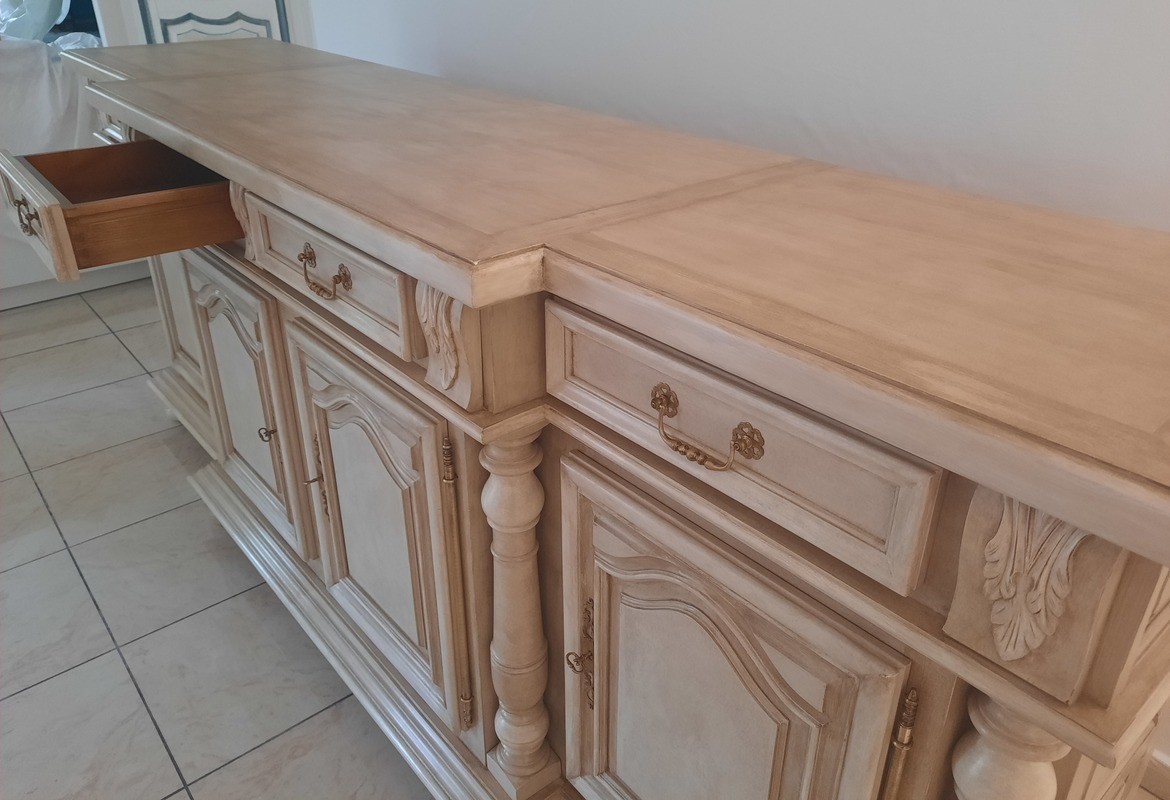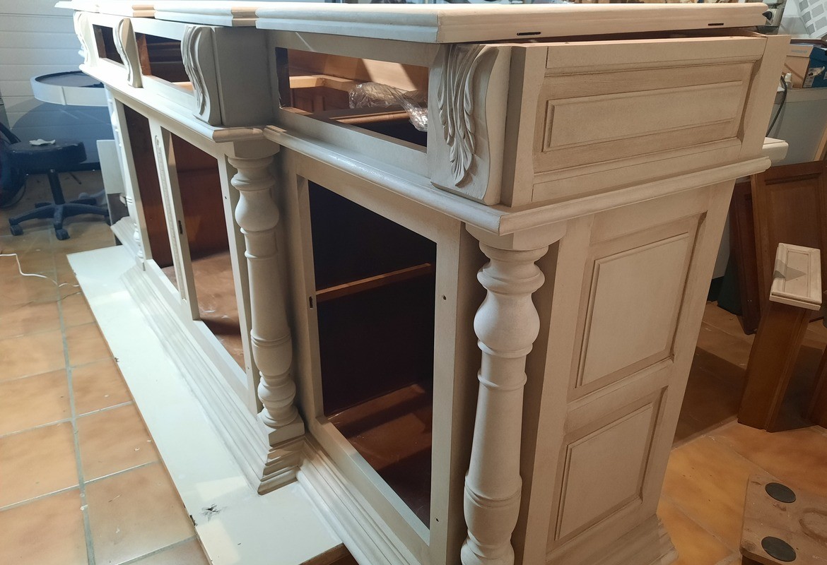 Cette magnifique et imposante enfilade de 2.70 m de long m'a occupé quelques semaines intenses à l'atelier.