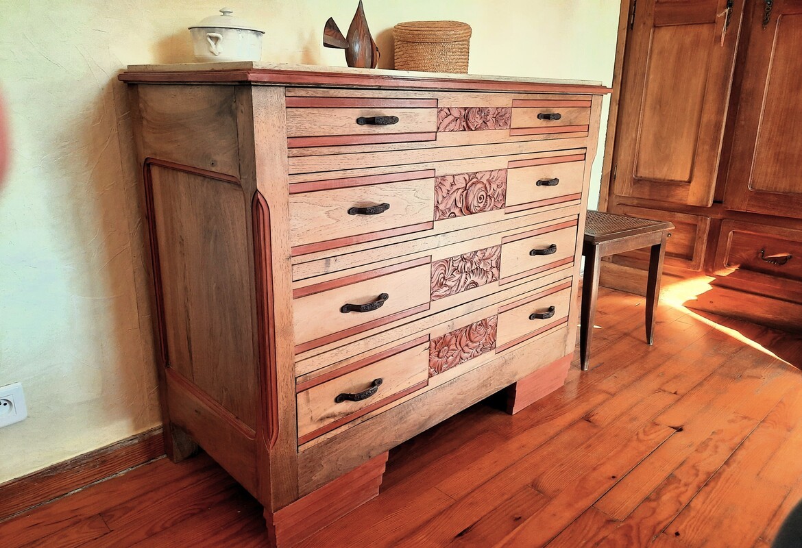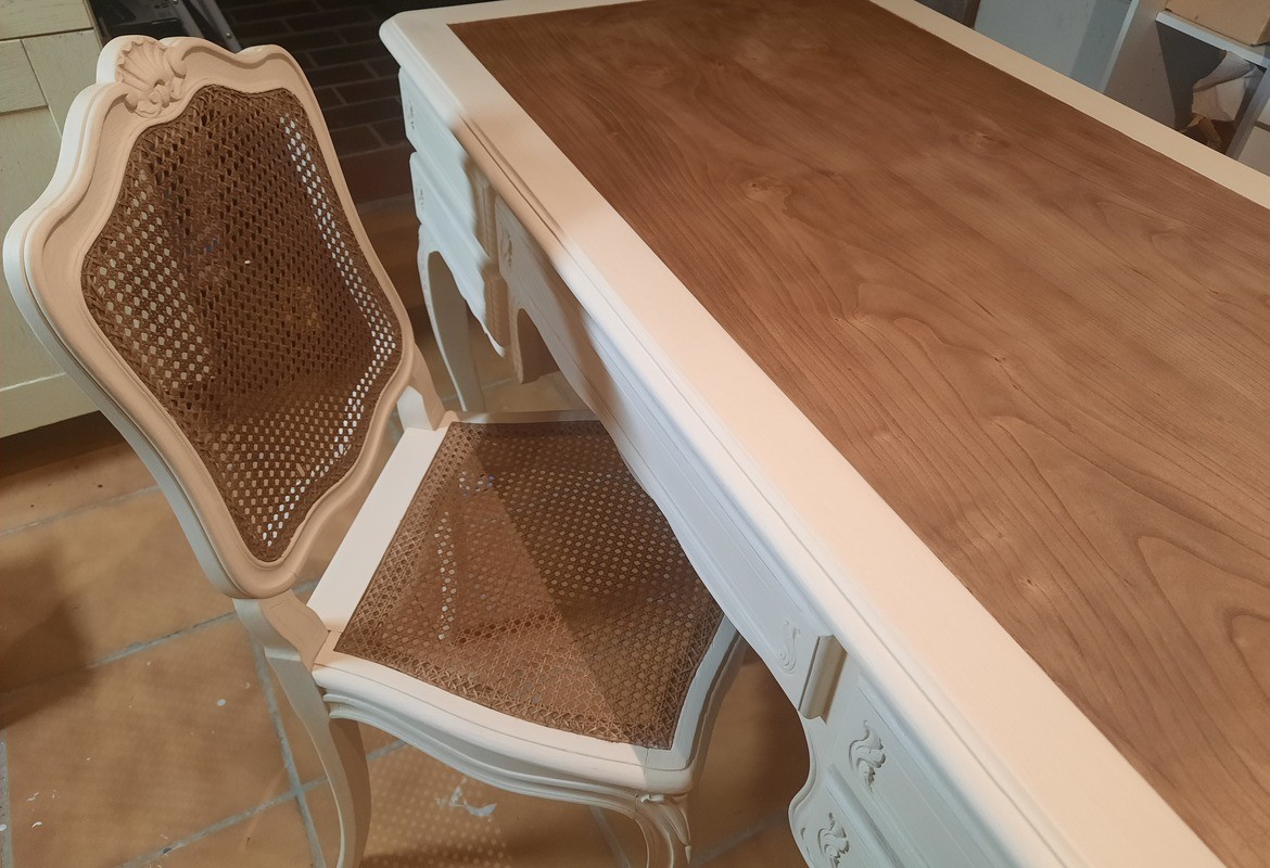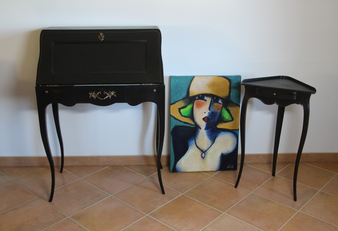 Spécialiste de la finition sur mesure des meubles et des objets, je réalise des peintures décoratives sur tout type de support (bois, marbre, plâtre, terre cuite, métal), des patines à l’ancienne ou contemporaines, des décors du XVIIIème siècle à nos jours, réalisés à mains levées, des finitions métallisées, des imitations de matière (cuir, rouille, béton, granit, porphyre). Je fabrique mes couleurs et mes patines à l’atelier grâce à une multitude de pigments naturels. Une mise en valeur du bois naturel peut suffire à moderniser un intérieur, je peux éclaircir un bois trop sombre ou grisé par le temps et lui rendre sa noblesse par une finition brute ou satinée, par une céruse ou un effet grisé. J’effectue les petites restaurations (consolidation, moulures abimées ou manquantes, trous de ver, etc.), les traitements préventifs et curatifs contre les xylophages et met à nu le bois par un décapage et un ponçage minutieux garant de la pérennité du meuble confié. Je prends également soin des marbres et quincailleries d’ornementation présents sur votre meuble et les transforme pour qu’ils s’accordent avec le projet décoratif défini. Chaque meuble, chaque objet confié est vitrifié pour un entretien facile et peut ainsi être utilisé sans crainte.